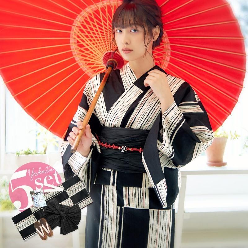 レディース 浴衣 セット 大人 ゆかた しわ兵児帯 下駄 着付け本 腰ひも 黒 シンプル ストライプ モノクロ 21年 上品 シック 高級 Dl Wako21 浴衣 水着通販dita 通販 Yahoo ショッピング